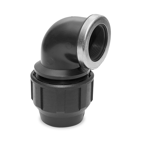 Reinforced 90° elbow, female threaded