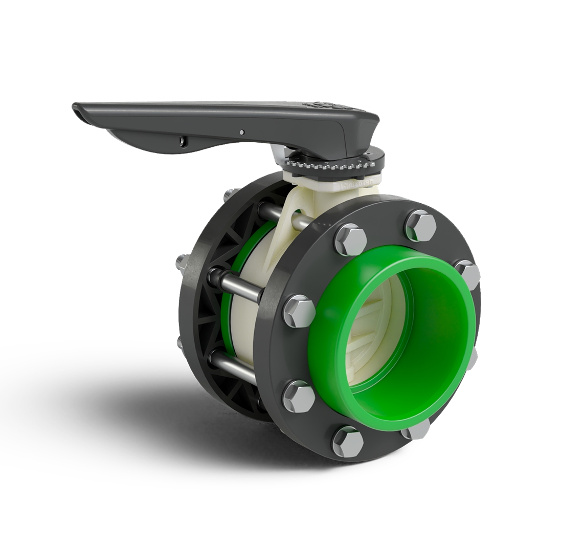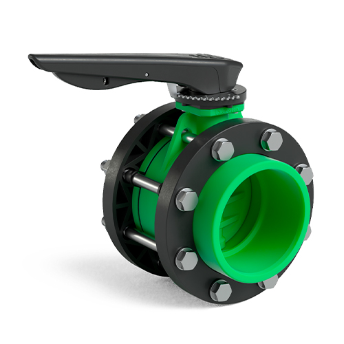 Green colour PP-RCT Implex catch handle/flanges butterfly valve
