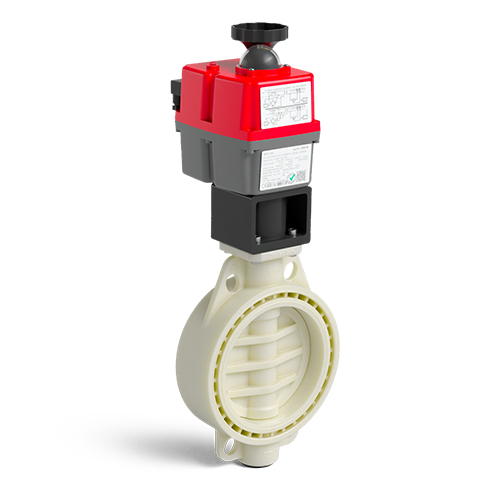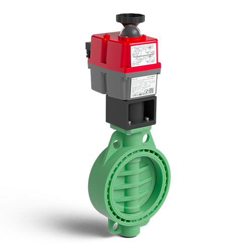 Green colour PP-RCT Implex butterfly valve with electric actuator