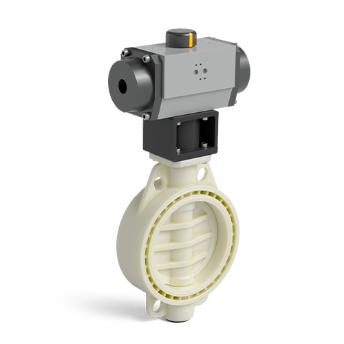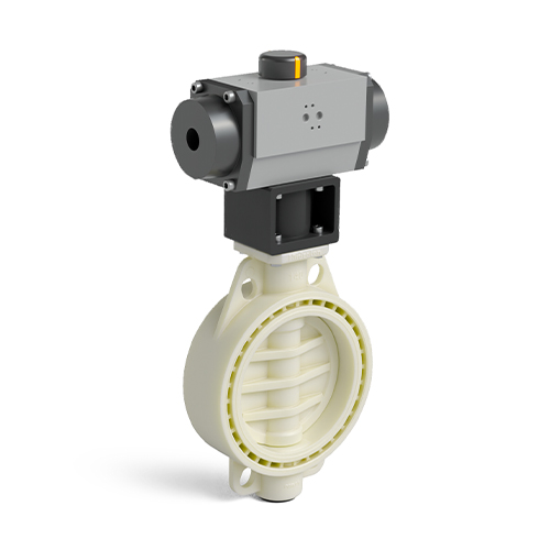 Cream colour PP-RCT Implex butterfly valve pneumatic actuator S/E