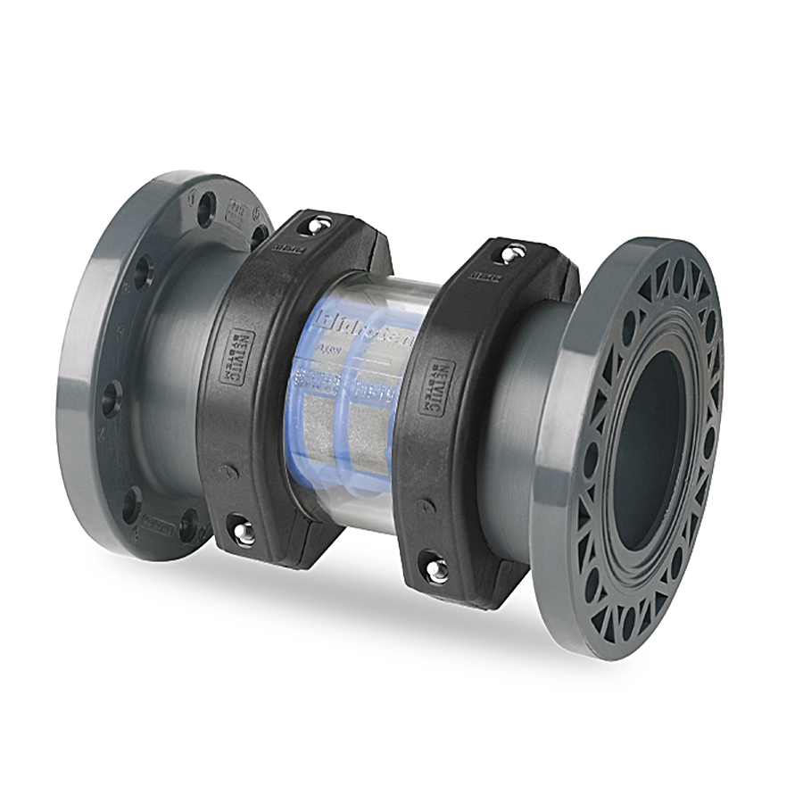 Line filter flanges outlet - screen sight glass