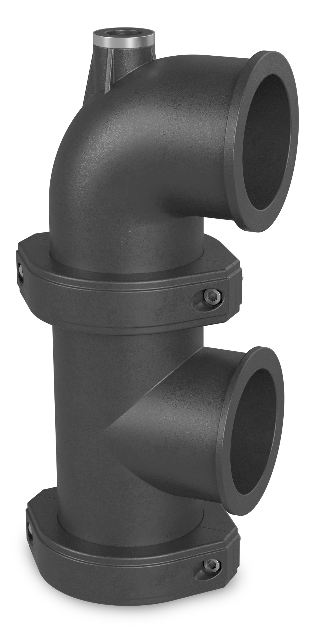 Vertical stone strainer flange outlet