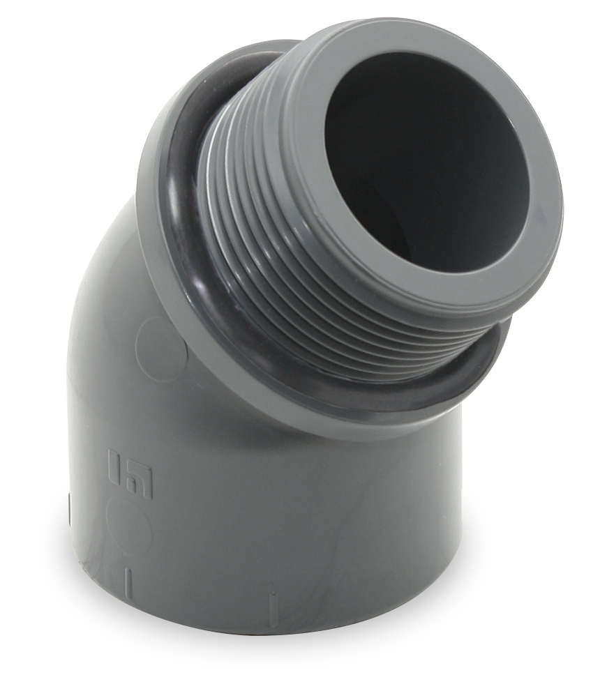 45º PVC ELBOW FEMALE-MALE THREAD WITH O-RING