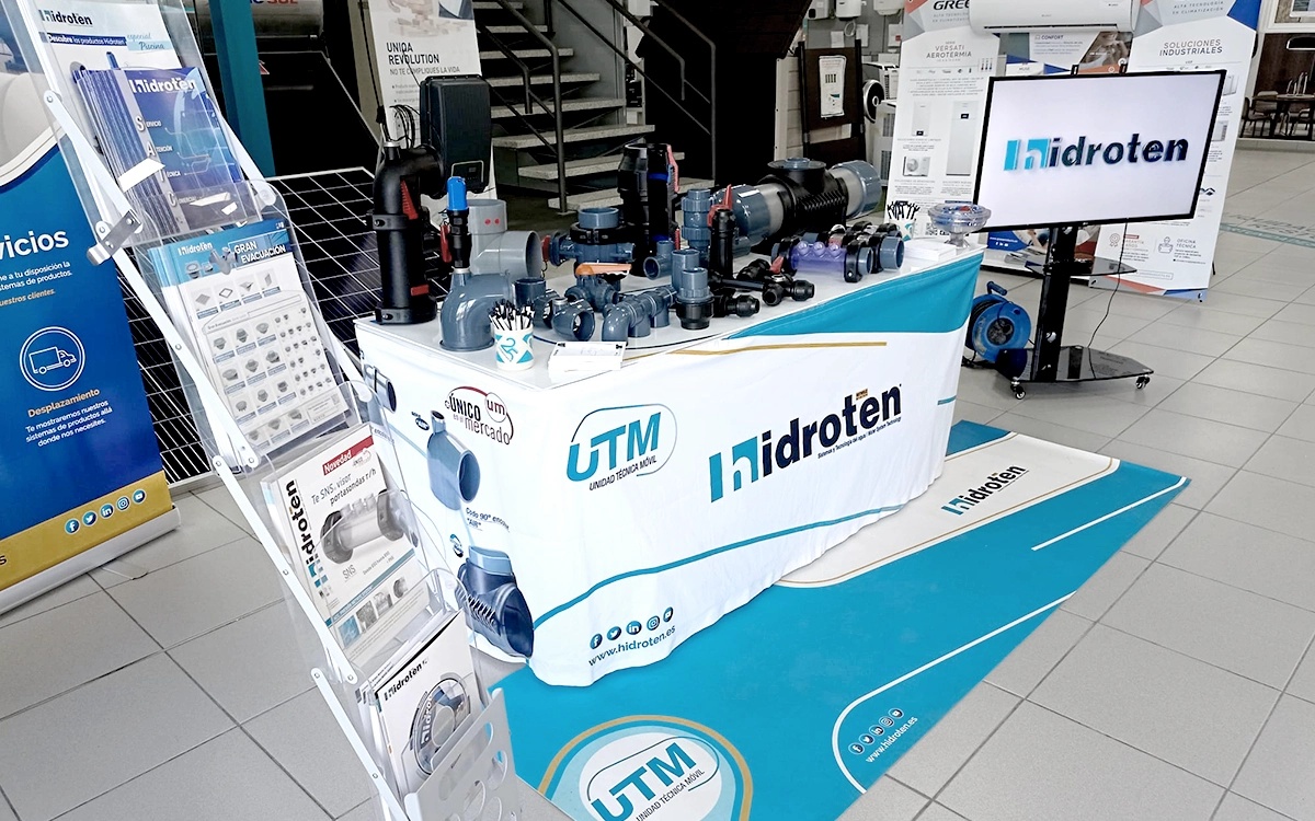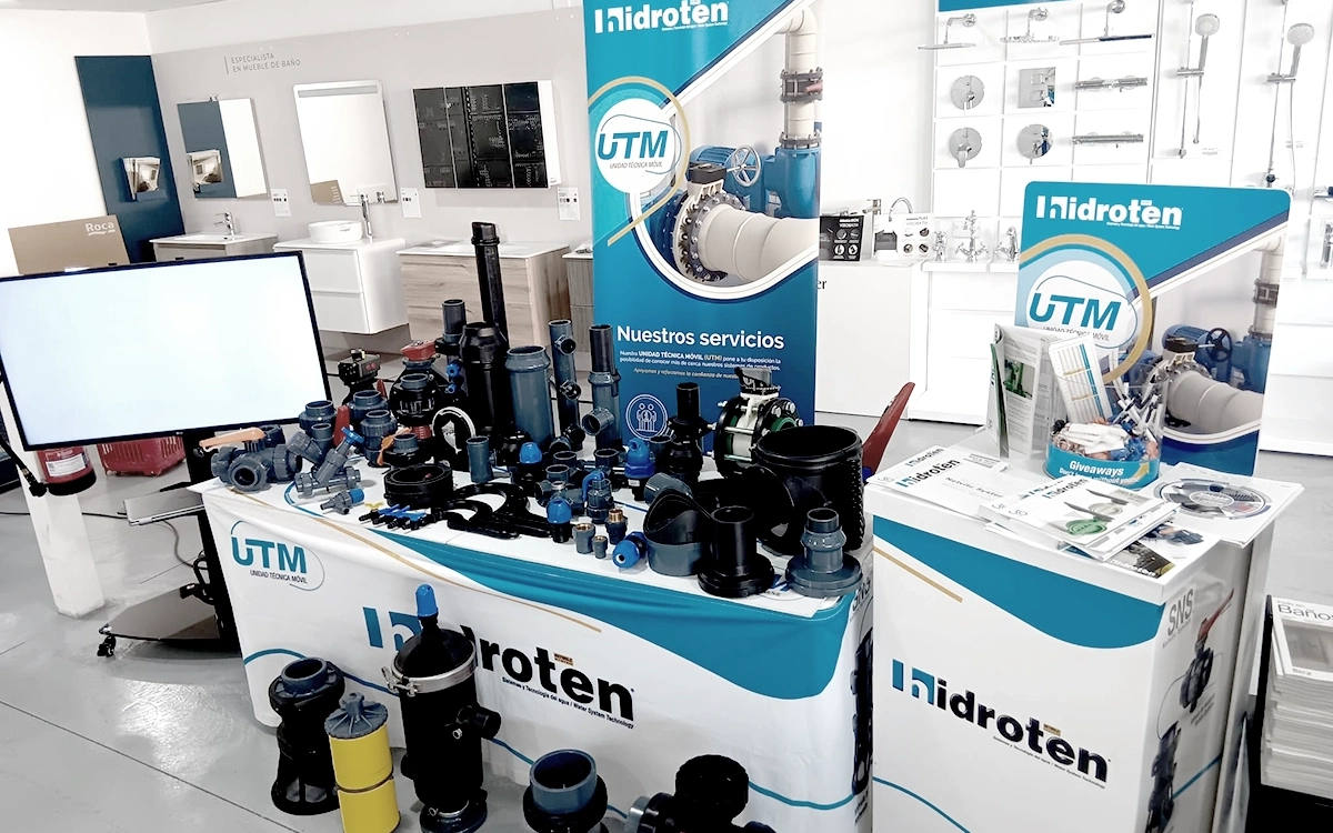 The UTM (Mobile Technical Unit) is a professional training service that Hidroten offers exclusively to its clients to enhance their knowledge of our product systems. This service provides the opportunity to learn about our products firsthand, as the UTM visits clients' facilities, traveling wherever they need us to conduct informative sessions with demonstrations and real products.